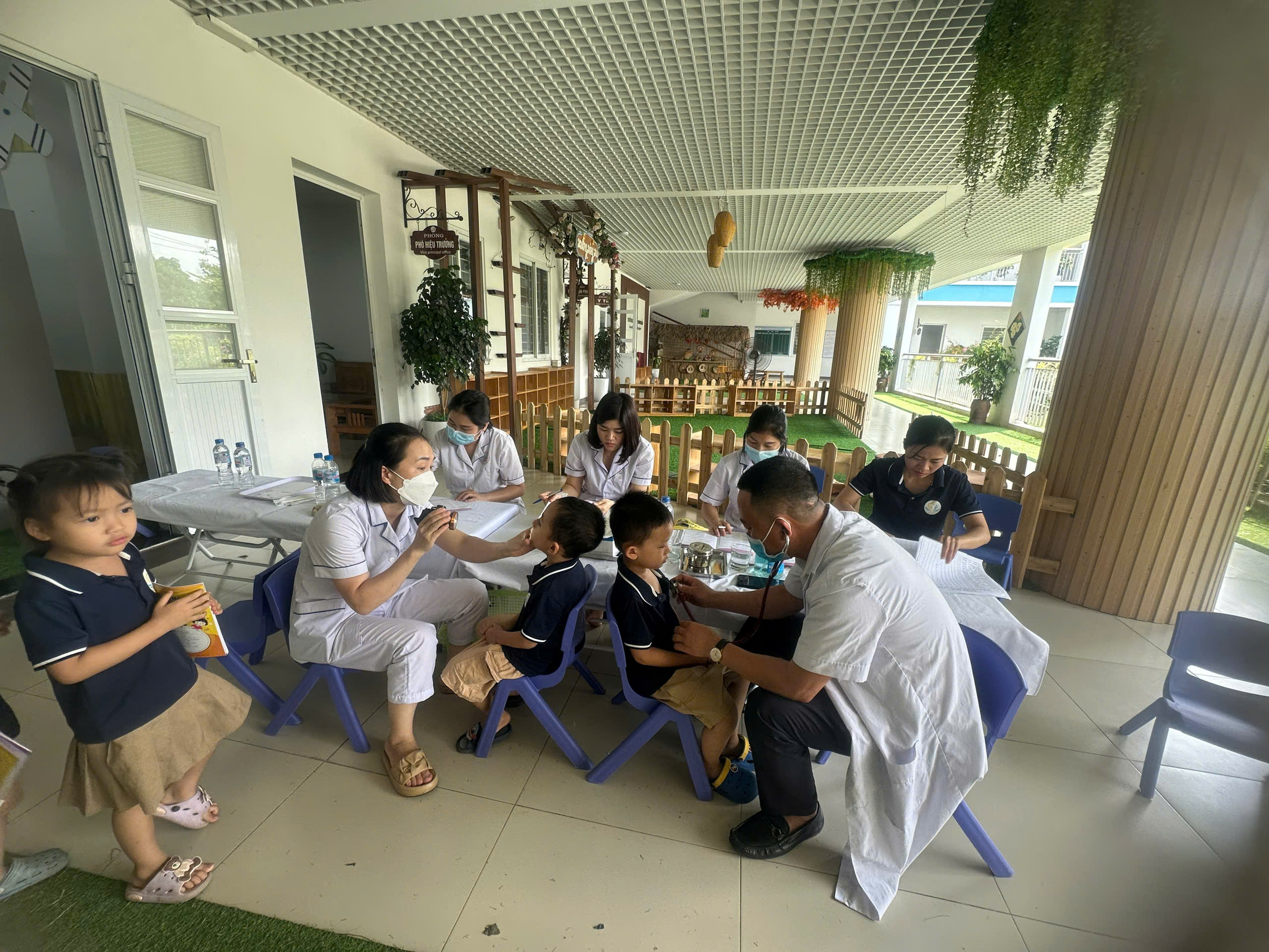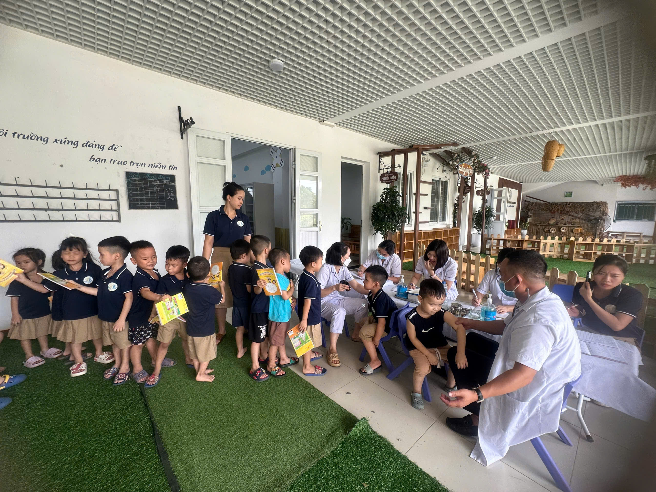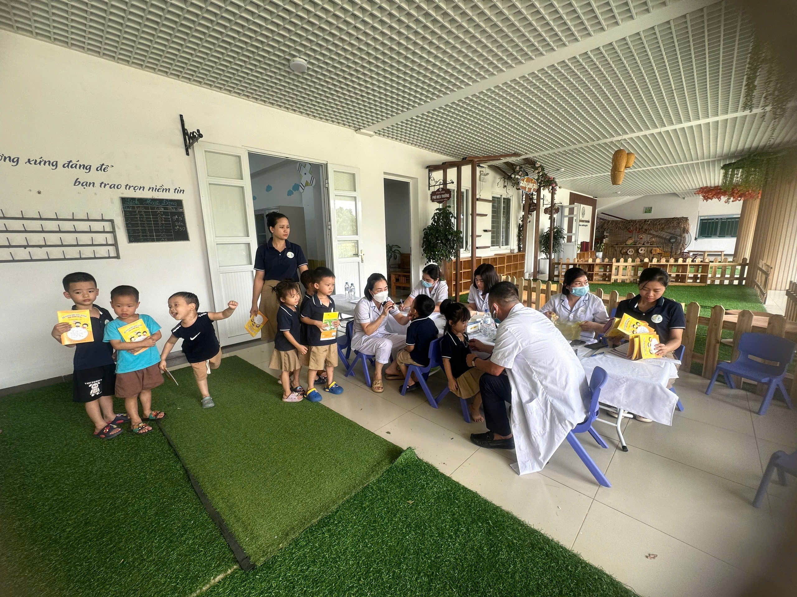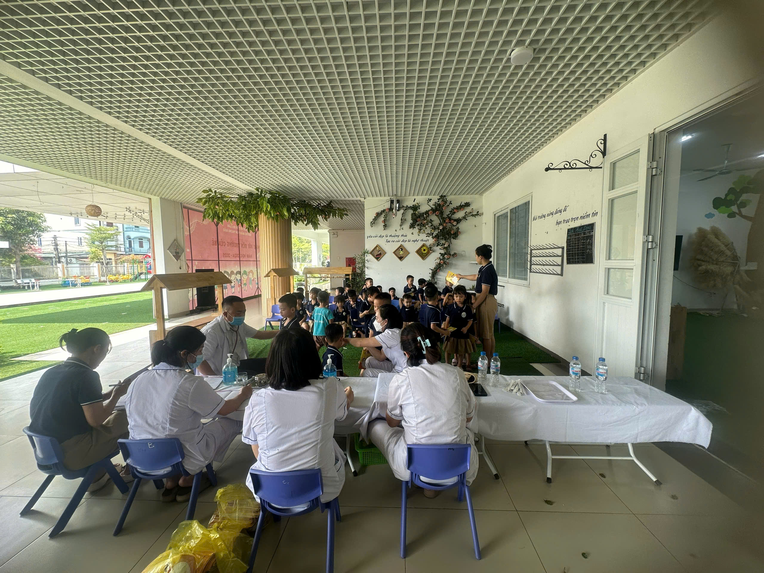 Hôm nay 14/10/2024 Trường MN Trung Mầu kết hợp cùng trạm y tế xã tổ chức khám sức khỏe định kỳ cho trẻ. Khám sức khỏe định kỳ cho trẻ giúp cha mẹ nắm rõ tình trạng sức khỏe tổng quan của con, đặc biệt là sự tăng trưởng về mặt thể chất (cân nặng, chiều cao) và tinh thần (trí não), từ đó đưa ra các phương thức xử lý và điều trị kịp thời. Vì vậy việc khám sức khỏe định kỳ cho trẻ luôn được nhà trường quan tâm đẩy mạnh lên hàng đầu.